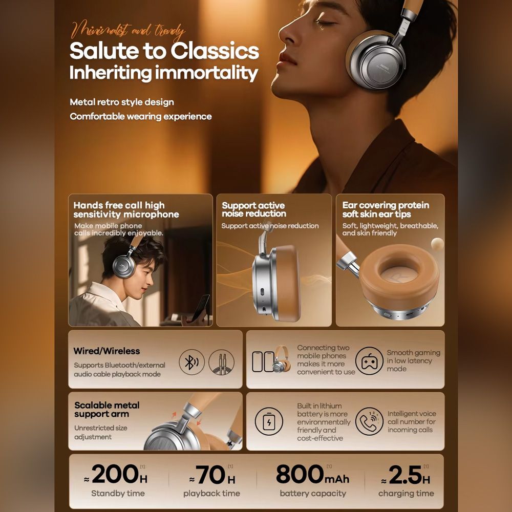 Bluetooth slusalice REMAX ANC RB-980HB braon