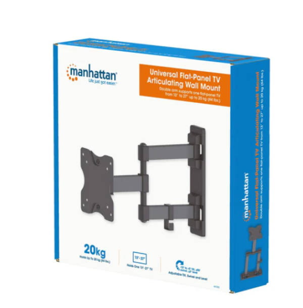 Prevaziđite čudan tlocrt, dosadan odsjaj ili neugodan plasman nameštaja koji može ograničiti vaše iskustvo sa ravnim ekranom. Manhattan Universal Flat-Panel TV zglobni zidni nosač savija skoro ravno uza zid i bezbedno se proteže na jakom okviru sa dvostrukom rukom koji vam pomaže da postignete glavne pozicije gledanja sa gotovo bilo kog mesta u sobi. VESA-kompatibilan i izrađen od kvalitetnih materijala, ovaj zglobni zidni nosač odgovara nizu veličina ekrana za sigurnu i sigurnu TV instalaciju iznad poda. Savršeno se uklapa u montažu televizora u vašoj dnevnoj sobi, spavaćoj sobi ili denu, kao i za komercijalnu upotrebu u hotelima, učionicama, konferencijskim salama, za digitalnu signalizaciju i još mnogo toga. Manhattan Univerzalni flat-Panel TV artikulirajući zidni nosač donosi vaš TV uživanje ispred i u centru.