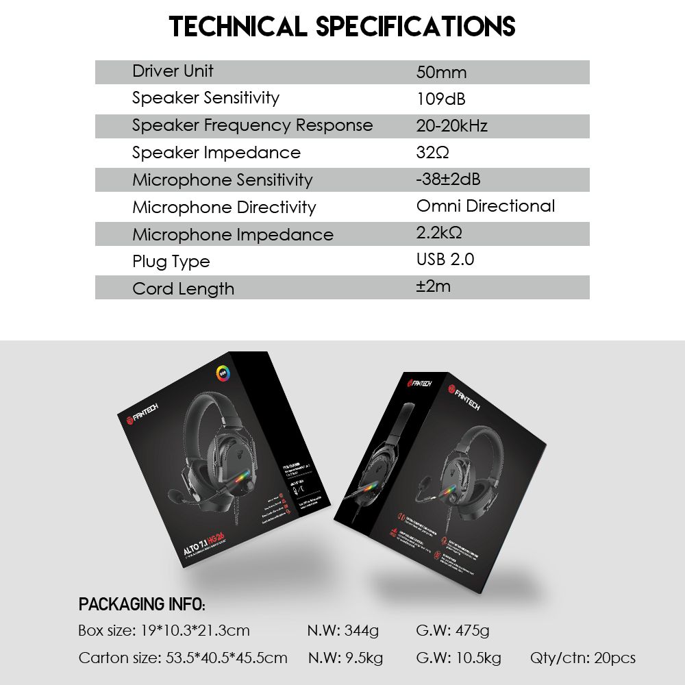 Fantech HG26 ALTO 7.1 donosi imerzivan 7.1 surround, 50 mm drajvere i odvojivi mikrofon, uz udobne memory foam jastučiće i RGB osvetljenje. USB povezivanje i kontrola jačine na kućištu čine ih idealnim izborom za moderne gamere.